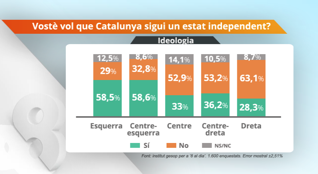 Encuesta 8tv del grupo godó. Apoyo a la independencia segñun ideología