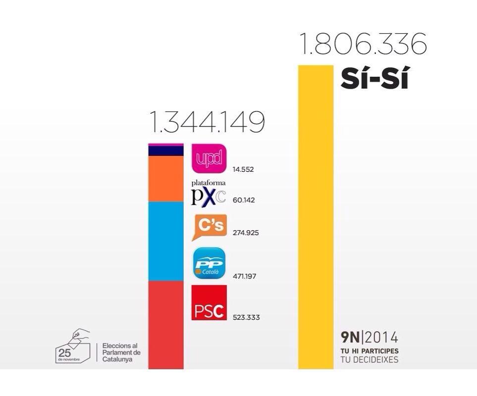 Otro gráfico compara el voto del SISI del domingo con los votos de las opciones del NO PxC, PP, C’s, UPyD y PSC. Es el punto de partida. A partir de ahí…